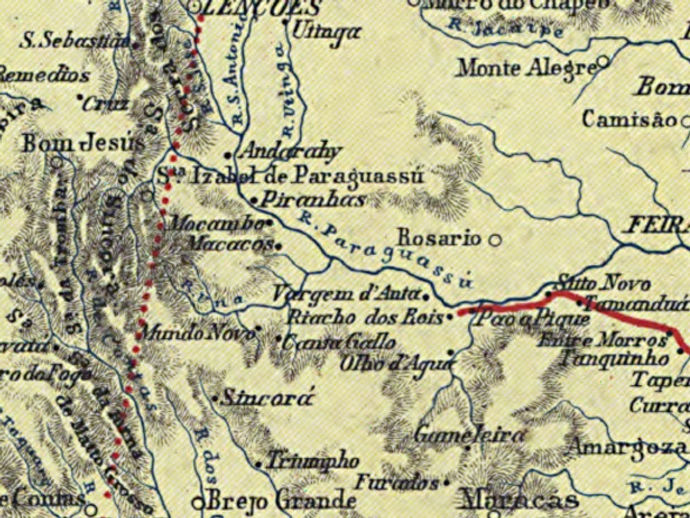 Atlas do Imperio do Brasil, 1868 Outro nome: Taquarituba O antigo povoado de Taquarituba situava-se às margens do rio Piranhas, 370 km a...