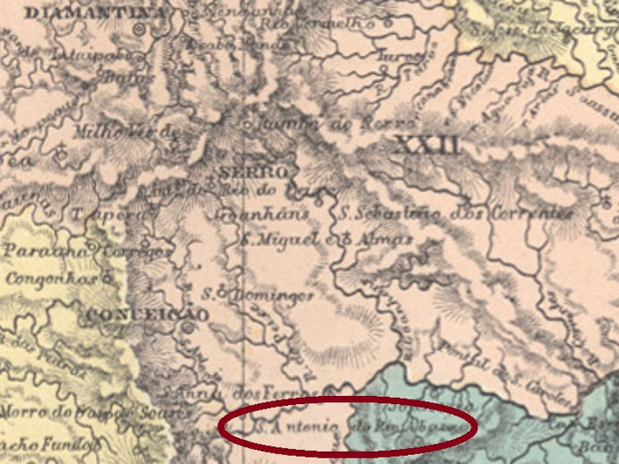 Atlas do Imperio do Brasil, 1868 Outro nome : Patos de Minas (1943) Veja também Patos/MG (R. Koester : Carimbologia XXX) Santo Antonio...