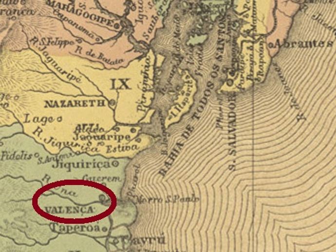 Atlas do Imperio do Brasil, 1868 A povoação de Nova Valença do Santissimo Coração de Jesus foi fundada no século XVIII na Vila de Cairu,...